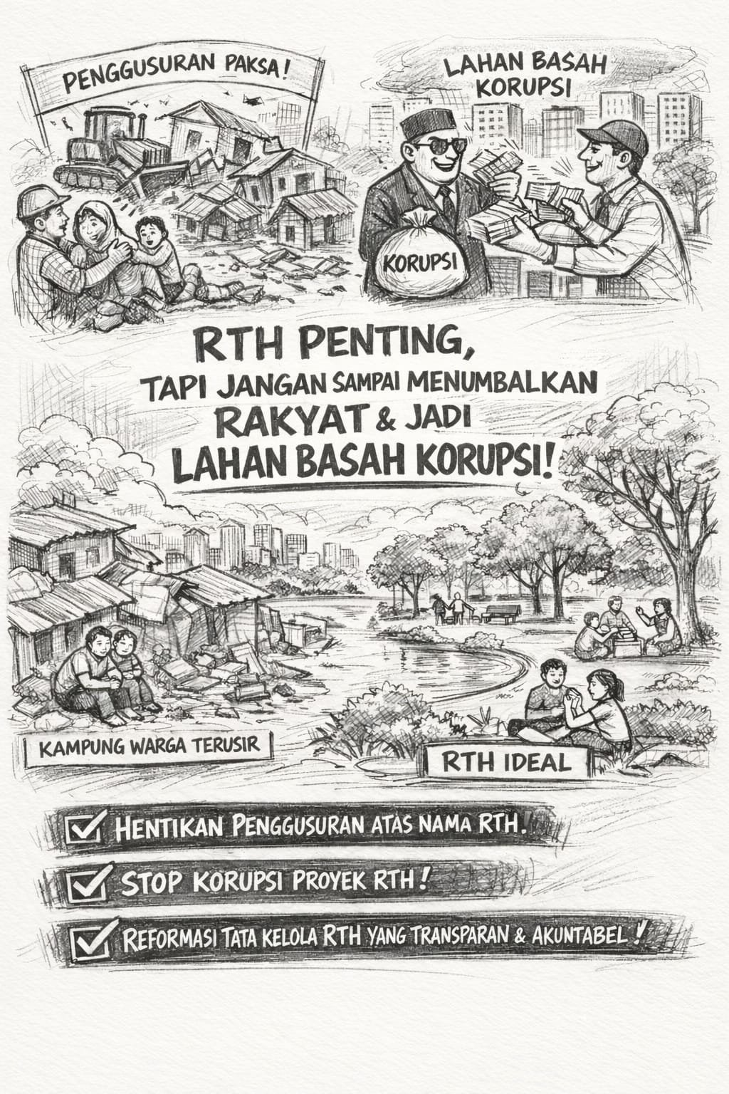 Tidak ada yang menolak pentingnya RTH. Kota tanpa ruang hijau adalah kota yang menuju krisis ekologis. Namun, pembangunan yang mengorbankan warga justru menciptakan krisis baru: krisis keadilan sosial.