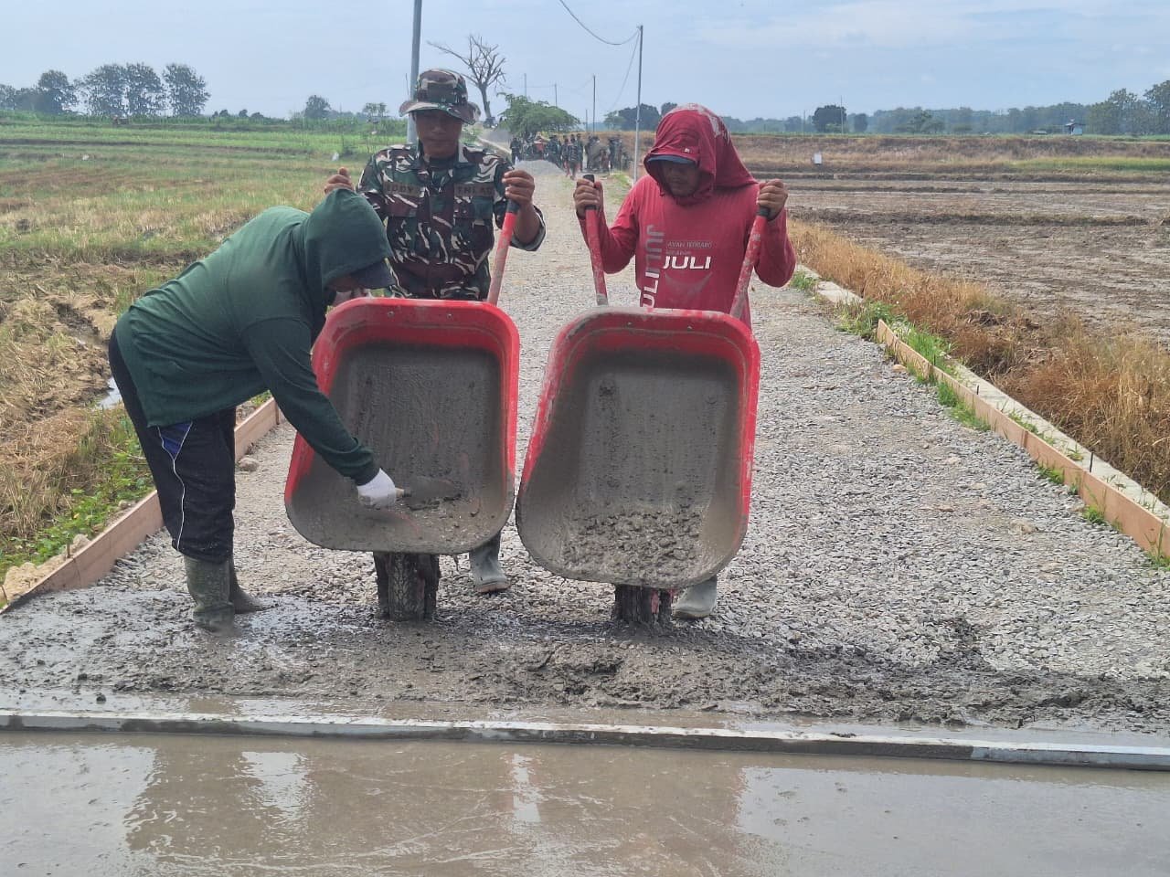 Di lokasi TMMD, proses pencampuran dilakukan menggunakan mesin molen dengan perhitungan matang. Satgas tidak bekerja secara asal, melainkan mengacu pada standar teknis agar hasil pembangunan memiliki kualitas yang baik dan tahan lama.