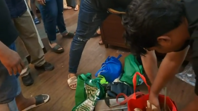 Saat stok semen di lokasi mulai menipis, anggota Satgas dengan sigap mengangkut material tersebut menuju dapur produksi adonan beton, Senin (27/04/2026), guna memastikan proses pengecoran jalan tetap berjalan lancar.